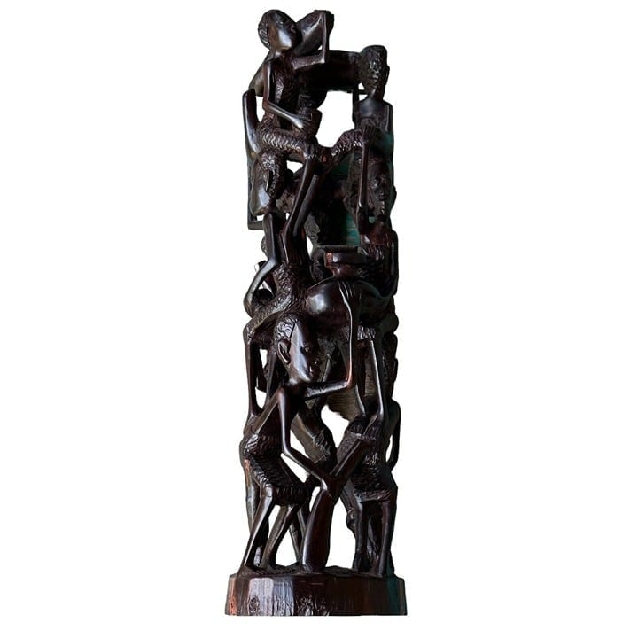 One Makonde specialty is the “Tree of Life” — a single chunk of ebony transformed into a swirl of interconnected people, rising from a trunk like memory made solid.